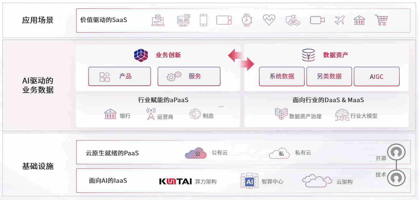数字时代,,围绕企业数字化转型的关键要素,,ABPAY钱包数码开创性的提出数云融合战略和技术体系框架,,着力在云原生、、数字原生、、、AI原生和信创产业上架构产品和服务能力,,为处在不同数字化转型阶段的快消零售、、、汽车、、、金融、、医疗、、、政企、、教育、、、、运营商等行业客户提供泛在的敏捷IT能力和融合的数据驱动能力,,构建跨界融合创新的数字业务场景和新业务模式,,,助力企业级客户建立面向未来的核心能力和竞争优势,,全面推动社会的数字化、、、智能化转型升级。。。